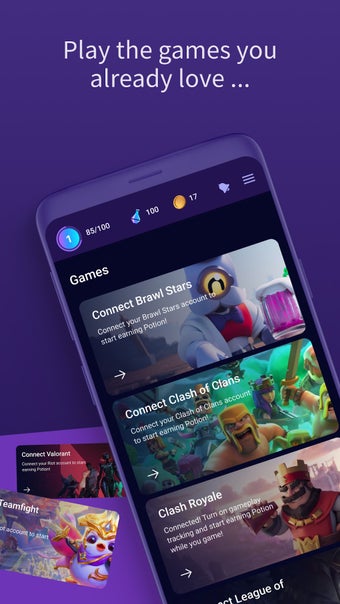 Potion é o aplicativo que recompensa os jogadores por jogarem seus jogos favoritos. Com ele, você pode ganhar Gift Cards, pontos e outras recompensas enquanto joga seus jogos favoritos!